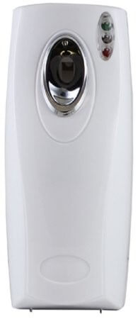 The slim, compact design is an attractive feature for any environment. Comes with a key lock mechanism and three interval settings – 7.5 minutes, 15 minutes, and 30 minutes. Operates 24 hours a day. A red light indicates the aerosol can is empty.